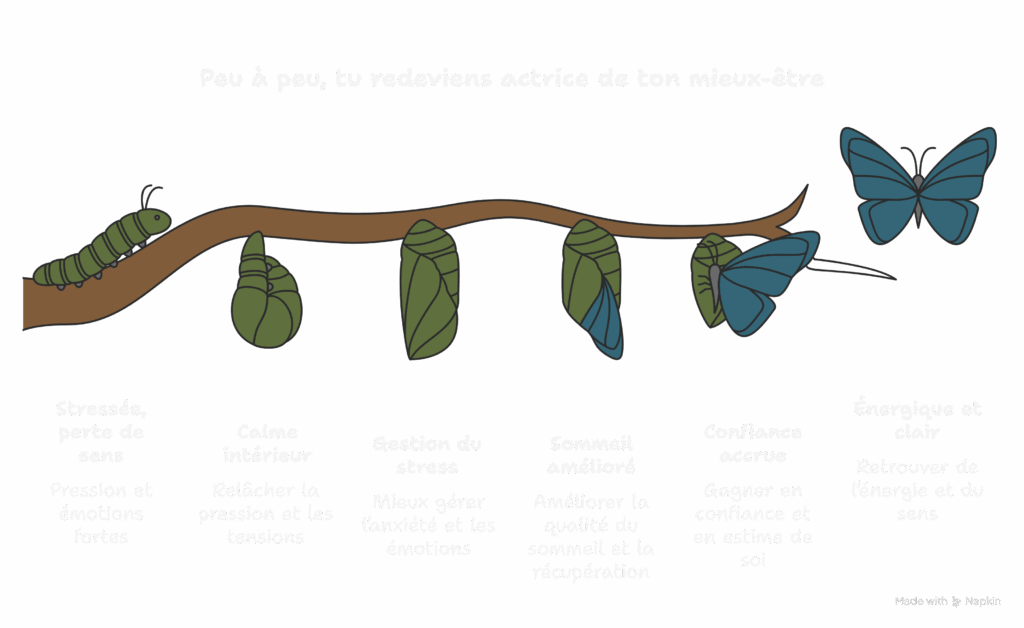 Peu à peu, tu apprends à mieux écouter ce que tu ressens, à renforcer ton équilibre intérieur et à cultiver une présence apaisée au quotidien.